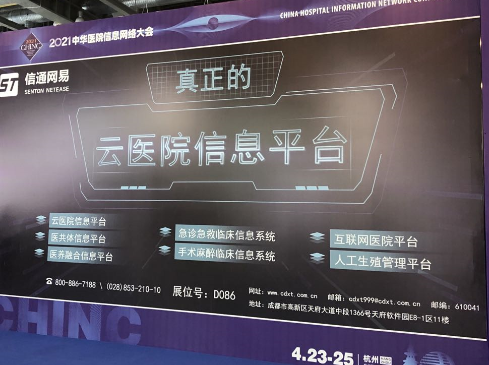 成都信通网易医疗科技发展有限公司受邀参加本次大会, 呼应会议主题,携云医院信息平台、医共体信息平台、互联网医院平台、手术麻醉临床信息系统、急诊急救临床信息系统、人工生殖管理平台、医养融合信息平台精彩亮相
