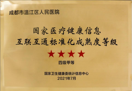 成都市温江区人民医院互联互通四级甲等证书