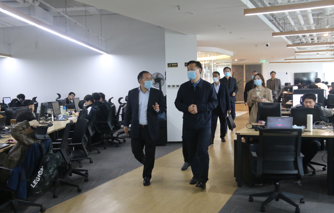 (赵浩宇副书记(右)一行参观信通网易办公区域)