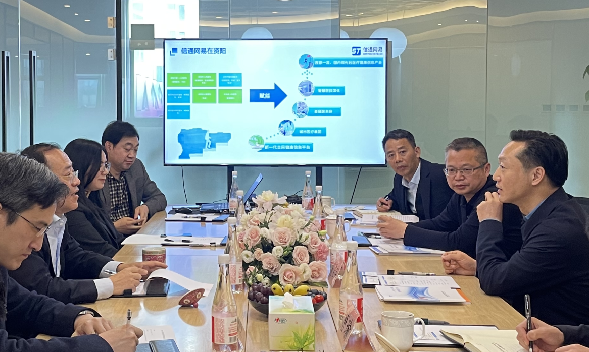 会谈中,信通网易公司全面介绍了公司整体情况,归纳阐述了产品主要亮点,展示了立足智慧医疗以发展“智慧医工+健康物联网”的产业规划,并做出合理而鼓舞人心的经营展望。信通网易现已广泛参与资阳市的医疗信息化建设,与市内及区县各主要医院形成普遍合作,这为深刻理解“健康资阳”工程提供了有力指导。通过持续深化合作,信通网易将通过建设新一代全民健康信息平台、服务城市医疗集团、打造县域医共体、深化智慧医院等多渠道持续赋能,协助资阳打造西部一流、国内领先的医疗健康信息产业基地。